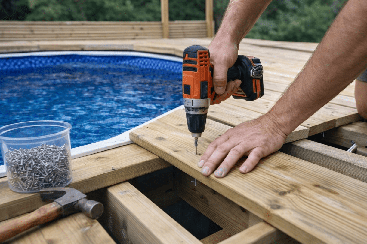 Behjälplig med: Trädäck / altandäck, gräva hål, installation av pool, sandfilterpump, poolvärmepump etc
