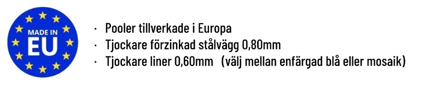 OBS ! Mosaic liner 0,60 mm tjock samt en rostfri stege ingår i våra swimmingpool-paket 1,50 m höga ovala